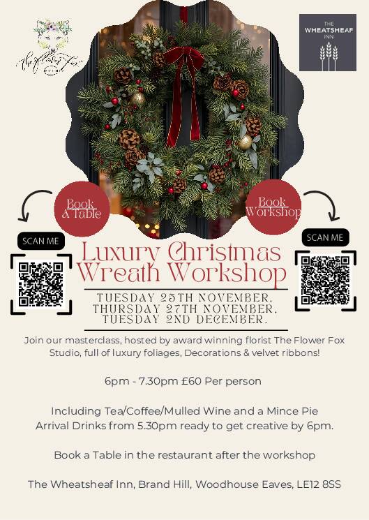 ✨🎄 Step into the magic of Christmas and join us at The Wheatsheaf Inn, Woodhouse Eaves, for our Fabulous Christmas Wreath Masterclass! 🎄✨